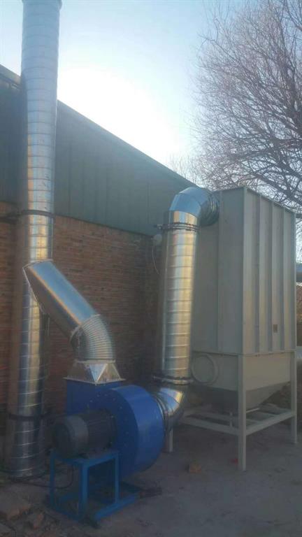 低壓脈沖袋式除塵器的氣體凈化方式為外濾式,含塵氣體由導(dǎo)流管進(jìn)入各單元過(guò)濾室,由于設(shè)計(jì)中濾袋底離進(jìn)風(fēng)口上口垂直距離有足夠、合理的氣流通過(guò)適當(dāng)導(dǎo)流和自然流向分布,達(dá)到整個(gè)過(guò)濾室內(nèi)空氣分布均勻,含塵氣體中的顆粒粉塵通過(guò)自然沉降分離后直接落入灰斗,其余粉塵在導(dǎo)流系統(tǒng)的引導(dǎo)下,隨氣流進(jìn)入中箱體過(guò)濾區(qū),吸附在濾袋外表面。過(guò)濾后的潔凈氣體透過(guò)濾袋經(jīng)上箱體、排風(fēng)管排出。